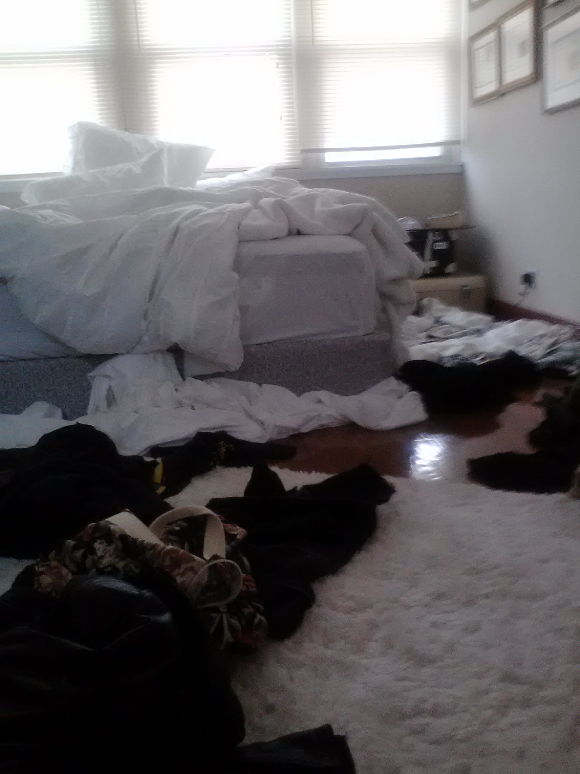 this is the sort of mess that is now all over my bedroom, bathroom and living room. even my car–empties and cigarettes and wadded up bags from steak n’shake. my son and his girlfriend have been wonderful albeit messy guests!